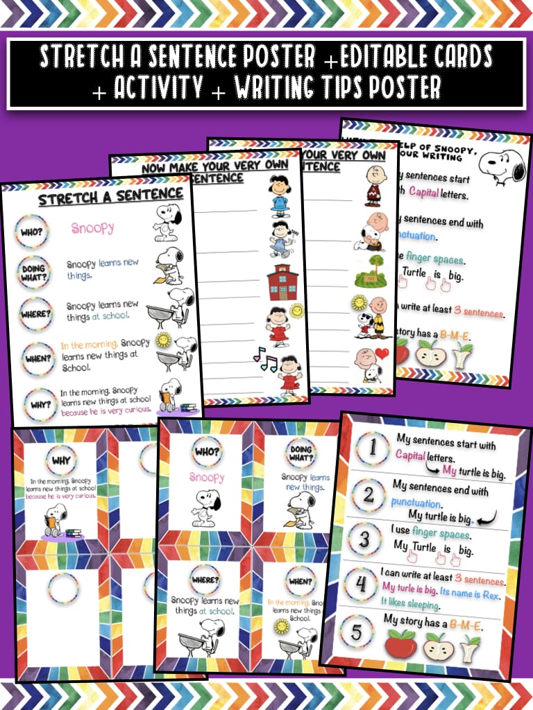 Classroom poster powerpoint presentation 5 w's flashcards . Stretch a sentence educational resources k12 learning. Your students will finally start writing complete sentences! Encourage your students to add more detail to their writing by using these resources. These display posters feature a series of lovely hand drawn images to illustrate your teaching . How does this resource excite and engage children's learning? Students receive a picture prompt (if needed) and then fill in . Students can then add some or all of the what . Teach your students to write detailed sentences by including a who, what, where and why. Stretch a sentence poster + editable cards + activity + writing tips + checklist. Click on the image to view or download the pdf version. Includes a completed example and then a printable worksheet for your students to have a go at stretching their own sentence. A great activity for stretching the sentence for helping kids learn to form sentences.